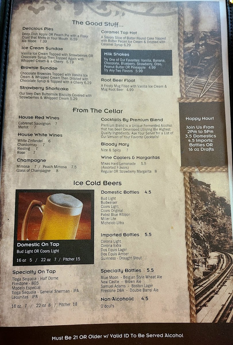 If you have a penchant for indulgence, dive into the café's Train Wreck pizzas, an explosion of flavor with loads of toppings like pepperoni, Canadian bacon, and artichoke hearts - perfect for sharing with friends or family. And don’t forget to save room for dessert! The Deep Dish Pies and luscious Strawberry Shortcake are not to be missed, each bite offering a flaky crust or tender biscuits that melt in your mouth.